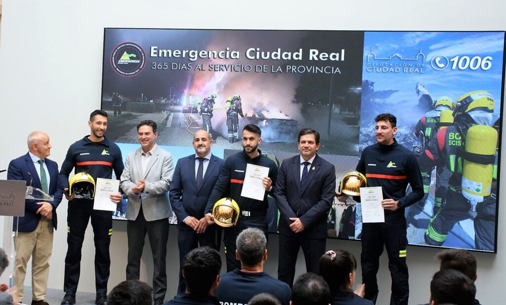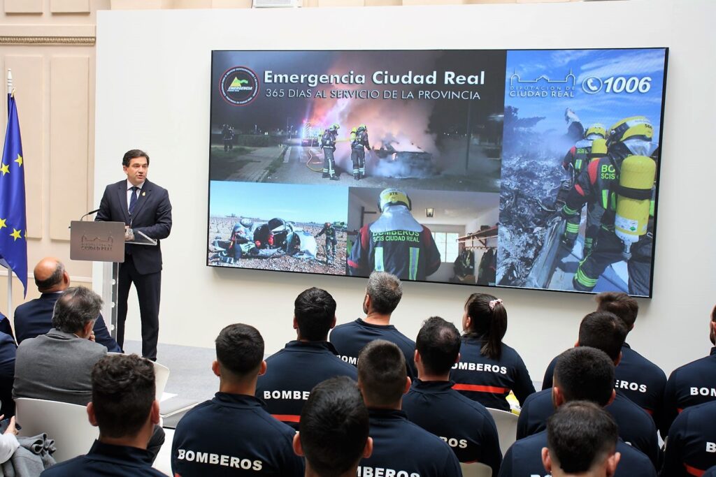 También recordó el tornado de Torre de Juan Abad, localidad a la que se trasladaron con celeridad para colaborar y favorecer la seguridad . “Nuestros bomberos están ahí cada día, con casi 18 actuaciones diarias, rescatando personas, aliviando sufrimiento, apagando incendios, y muchas veces arriesgando su propia seguridad y salud”, aseguró.